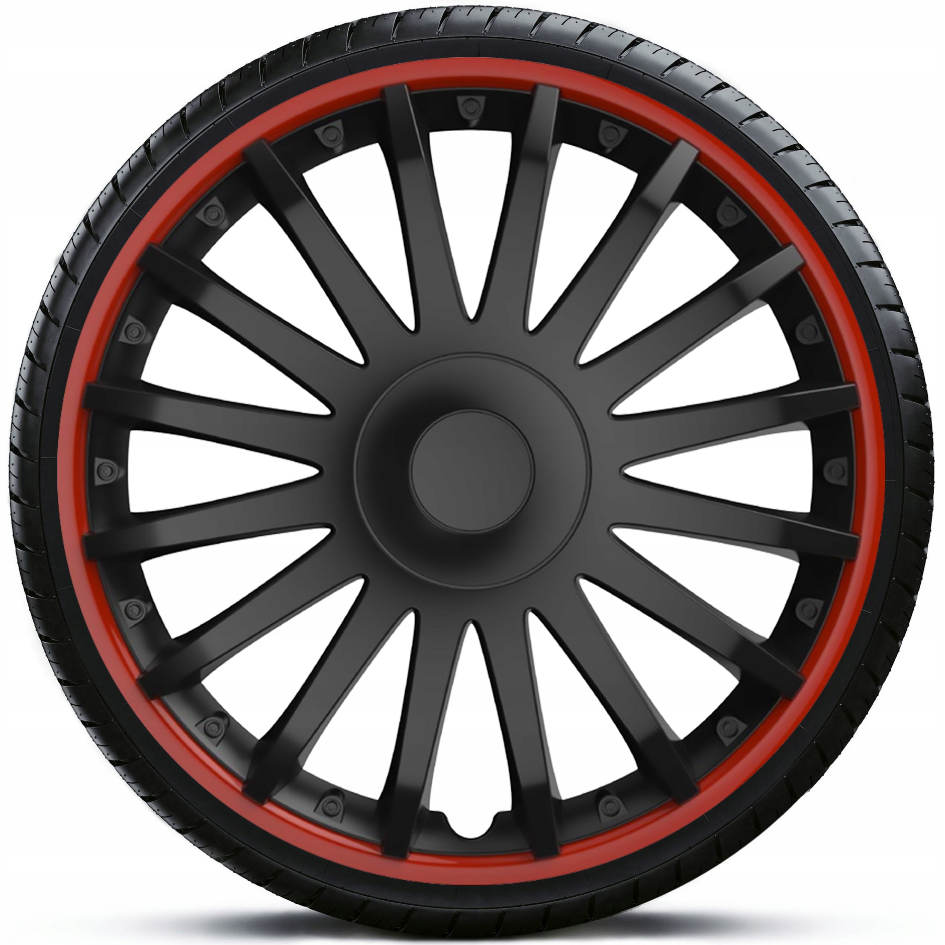 Kołpaki CRYSTAL RO Czarno Czerwone 15 cali