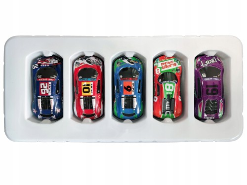 Zestaw 5 sztuk metalowych samochodów wyścigowych.Metalowa obudowa z elemntami plastikowymi wykonana w skali 1:64.